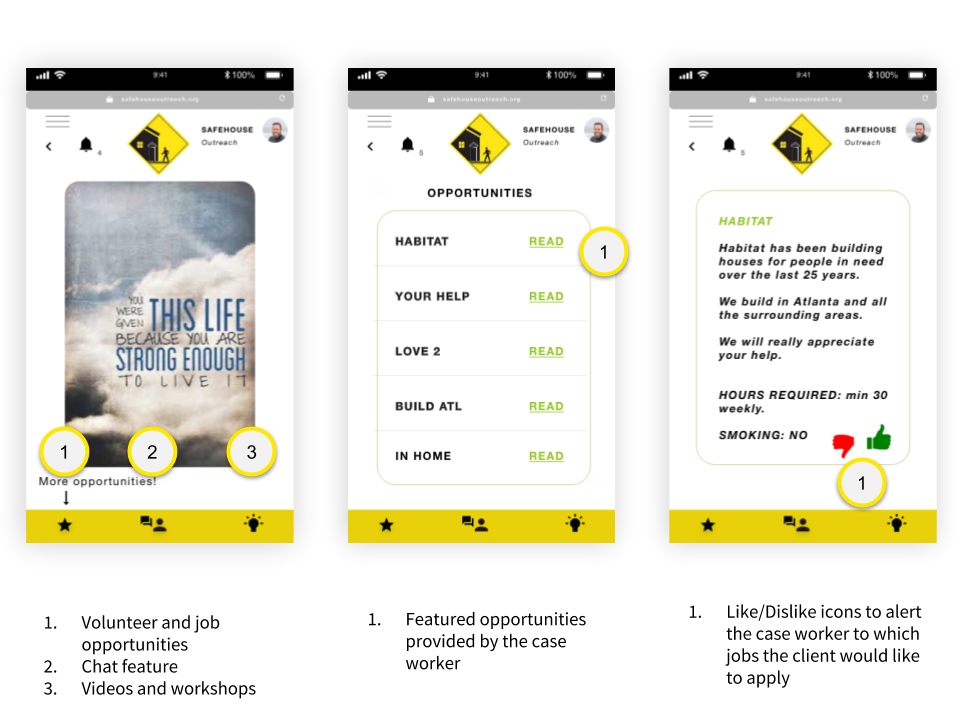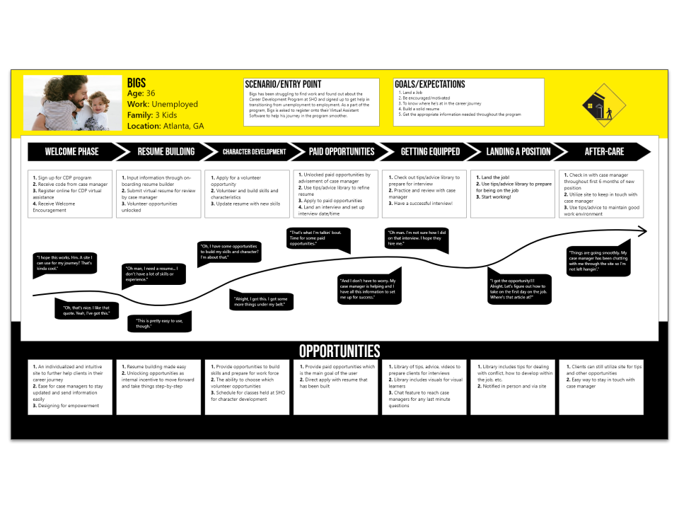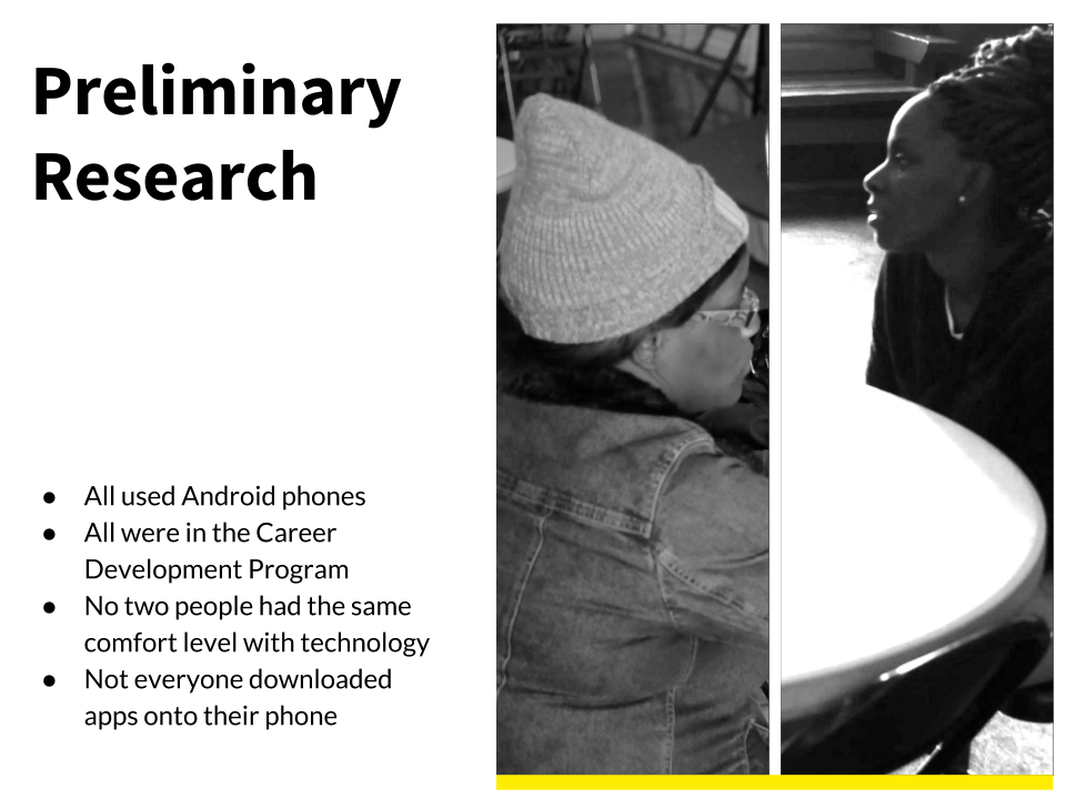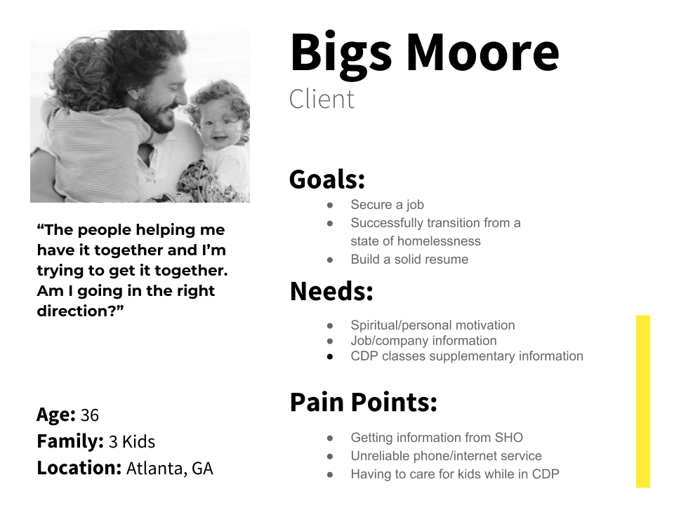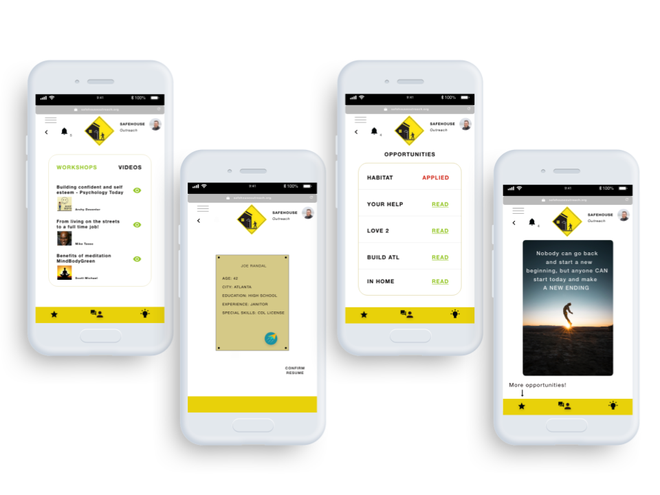 UX research and mobile app concept for a local non-profit in Atlanta helping people struggling with homelessness to develop their career paths.